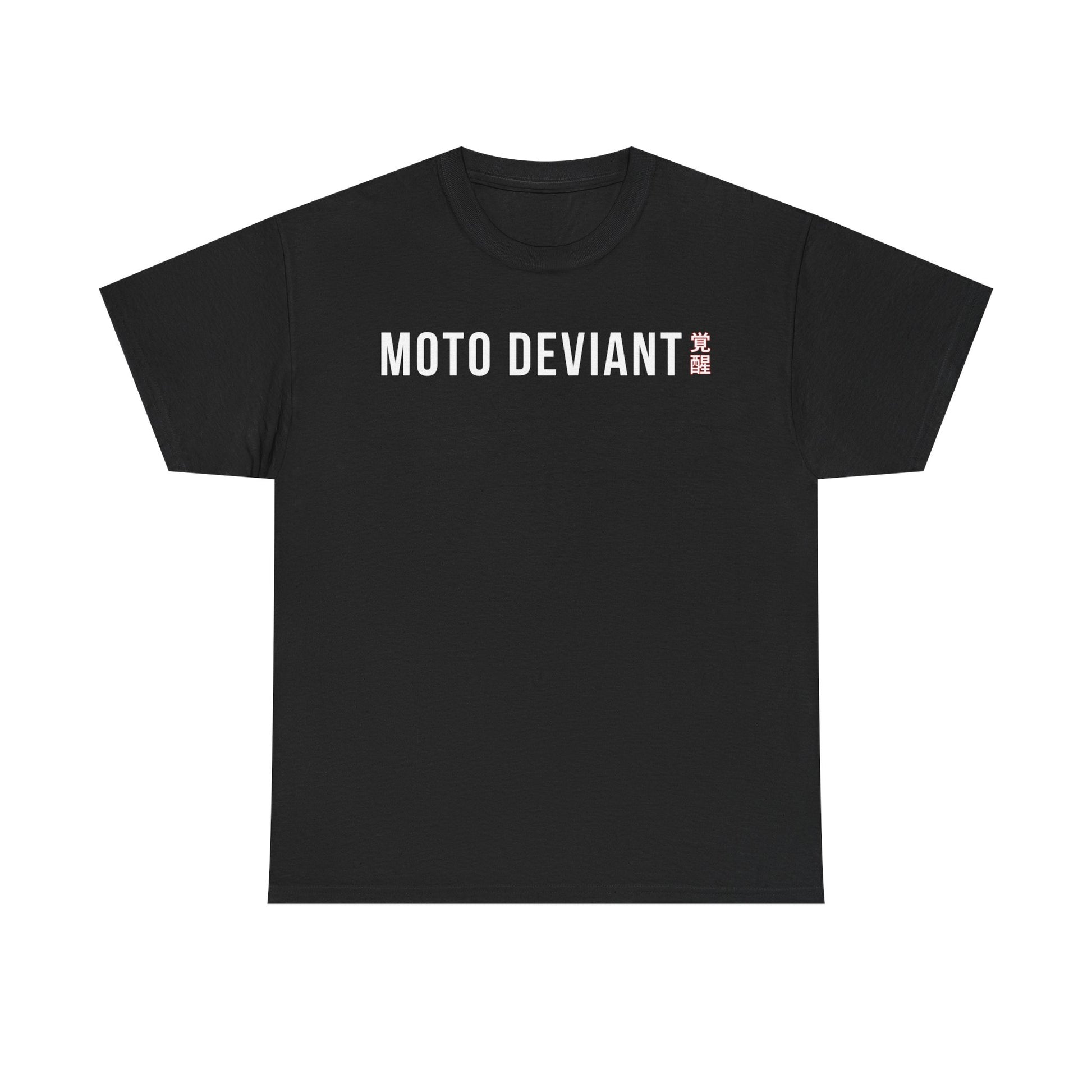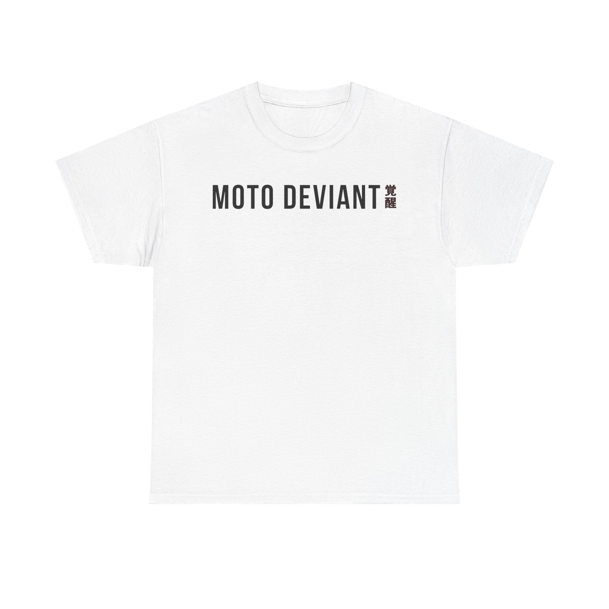 The front displays a clean MOTO DEVIANT × 覚醒 mark — meaning awakening.
