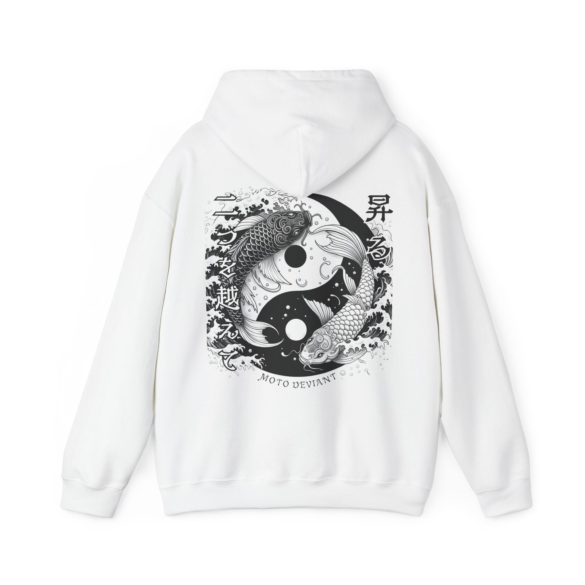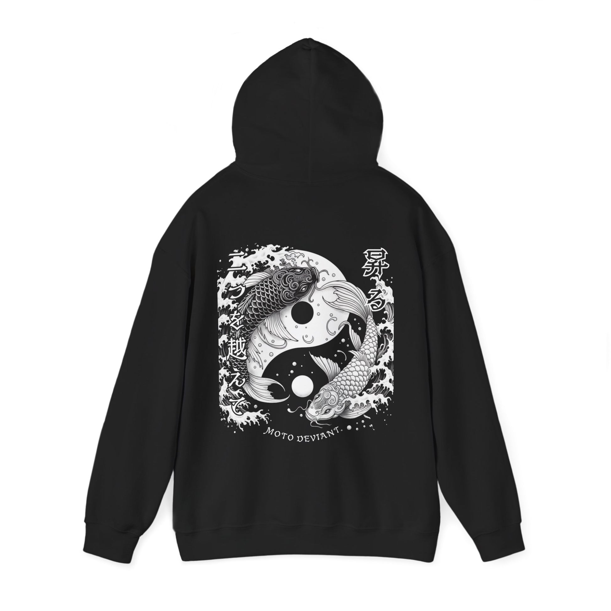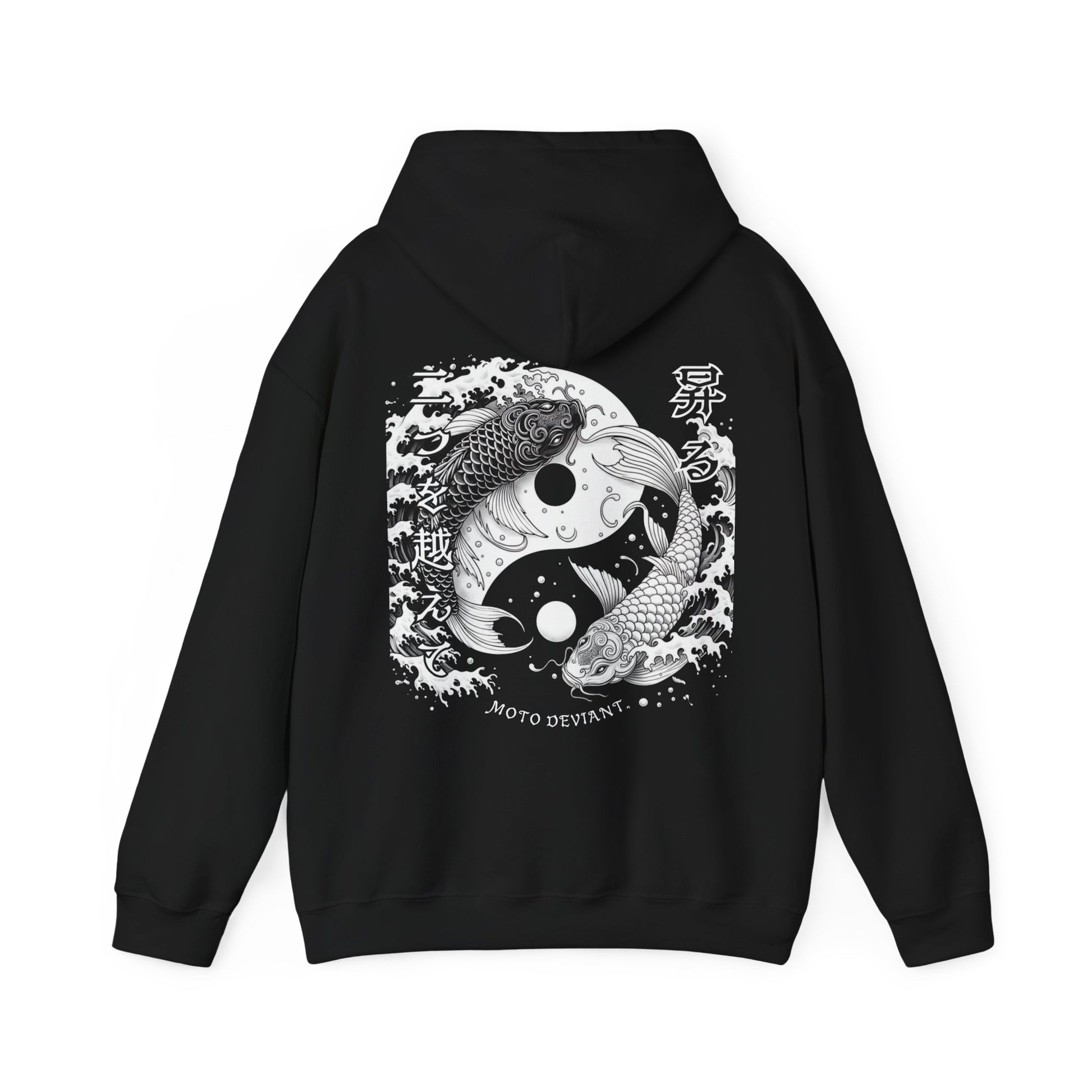 Embrace the balance between chaos and harmony with our signature Yin Yang Koi design. This striking piece of moto streetwear captures the eternal dance of opposing forces—light and shadow, power and grace, tradition and rebellion.
