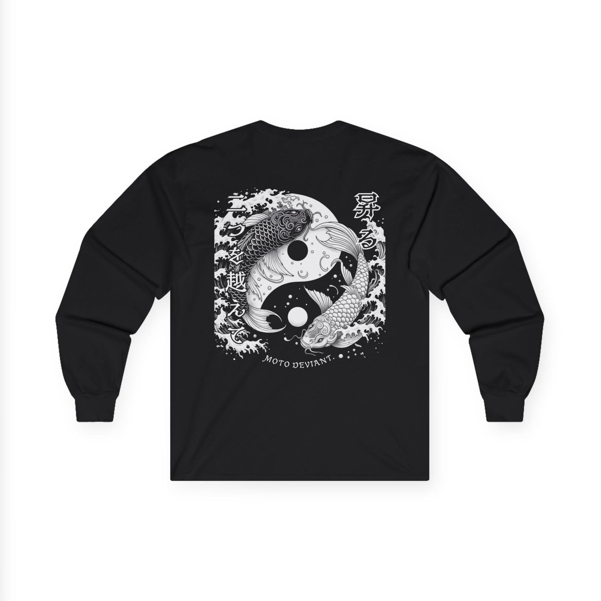 Embrace the balance between chaos and harmony with our signature Yin Yang Koi design. This striking piece of moto streetwear captures the eternal dance of opposing forces—light and shadow, power and grace, tradition and rebellion.