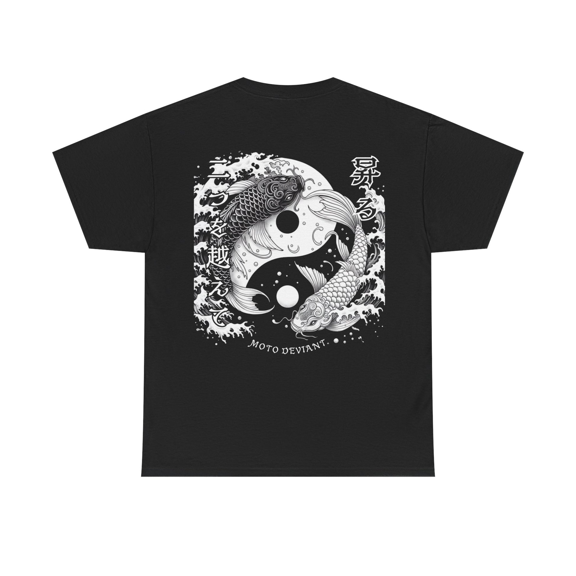 Embrace the balance between chaos and harmony with our signature Yin Yang Koi design. This striking piece of moto streetwear captures the eternal dance of opposing forces—light and shadow, power and grace, tradition and rebellion.